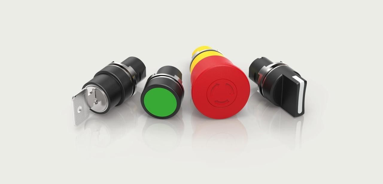EcoTouch bietet kompakte Taster- und Schalterlösungen, die perfekt in 22- oder 30-Millimeter-Ausschnitte passen und in flacher oder erhabener Form geliefert werden. Jeder Schalter erfüllt die Anforderungen der Schutzart IP65 und gewährleistet so einen langlebigen Betrieb selbst unter widrigen Bedingungen. Für die robustere Nutzung stehen die Hängesteuerungen der Serie bereit: Sie besitzen IP66-Zertifizierung, sind in zwei Gehäusegrößen verfügbar und lassen sich in Grauton oder Signalgelb an spezifische Anwendungsfälle anpassen und Installationsszenarien.